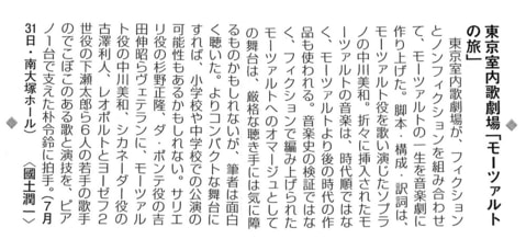 先日、7月に東京室内歌劇場で、私の企画、脚本、音楽構成や日本語訳詞etc…で、上演された音楽劇「モーツァルトの旅」が、