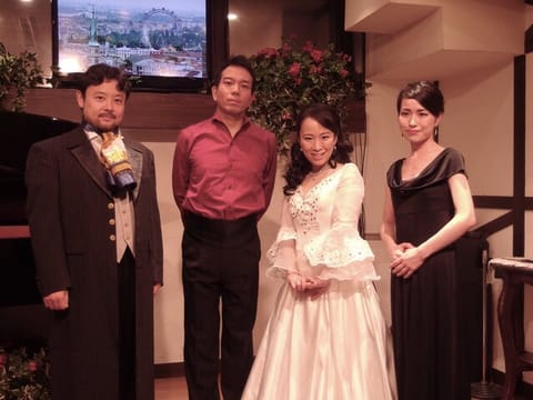 左からエンリーコ/大石洋史さん、エドガルド/三村卓也さん、私、ピアノ/金子渚さん