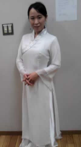 私が今回着用したのはベトナムの民族衣装アオザイ。私が演じた稗田阿礼(ヒエダノアレ)は巫女という設定だったので、白い巫女っぽい衣装・・・を探して、この衣装に。