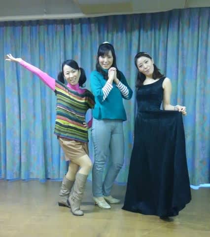 ソプラノの鳥屋有紀子さん、ピアニストの伊藤友香ちゃんに手伝ってもらって、女子3人、いざ参る!!