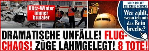 日本でどのくらいニュースになってるかは知りませんが、ヤフーニュースでチェックしてると、ヨーロッパ大寒波~、くらいは取り上げられていました。12月って皆こんなもんなの・・・?とか思ってたんですけど、さすがにこの寒さは唐突だったらしいんですね。ドイツでも、こうして結構なニュースになってるわけだし。