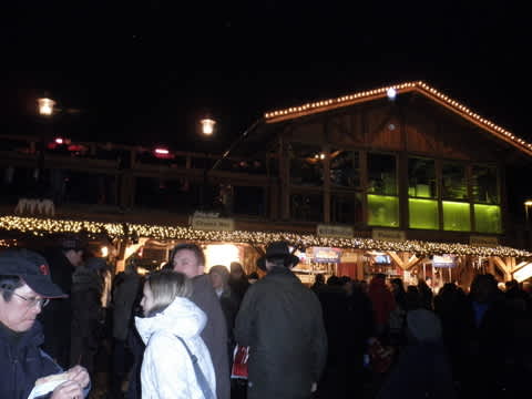 ちなみに、スケートリンクの真っ正面には、グリューワインのお店単独ではなく、グリューワインハウスができてます。ビアガーデンのホットワインバージョンですね。もちろん食べ物もどっさり。