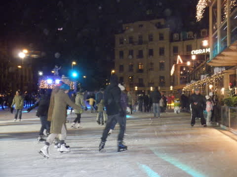 夏場は噴水だった所が、冬場はスケートリンクに早変わり。