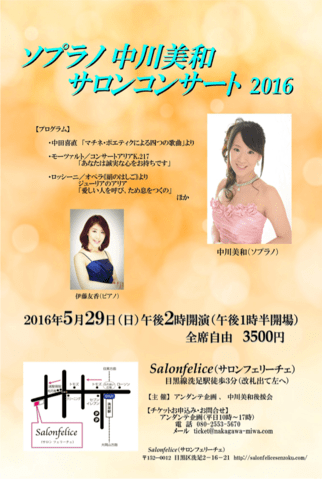 一つ目は、3月11日付けのブログでもお知らせしましたが、毎年開催している、私のサロンコンサート。