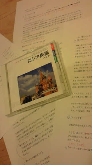 下のいろいろ書いてある紙は、ざっとは書きあがったものの、まだ添削中の台本。赤ペン先生状態です。もっとカットしなくては・・・時間オーバーだわ・・・