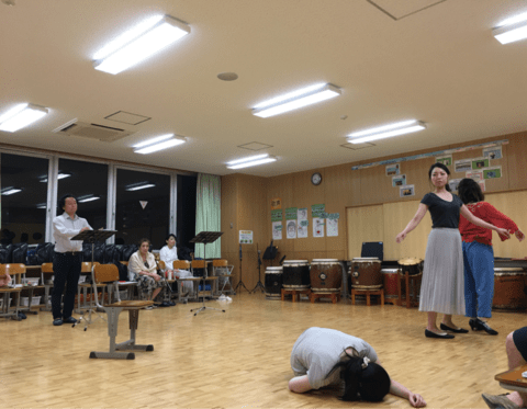左奥から、悪霊(吉田伸昭先生)、子供(櫻井日菜子さん)、家庭教師(前澤悦子先生)