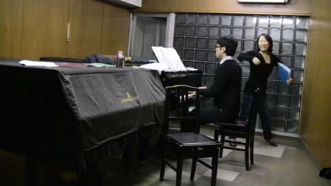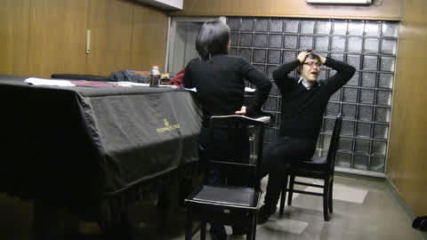 今回も伴奏してくれる田中さん、ごめんね・・・(私信)しかも今回は伴奏だけじゃなく、演技までさせて、ピアニスト泣かせの異名は更新中って感じですか(苦笑)
