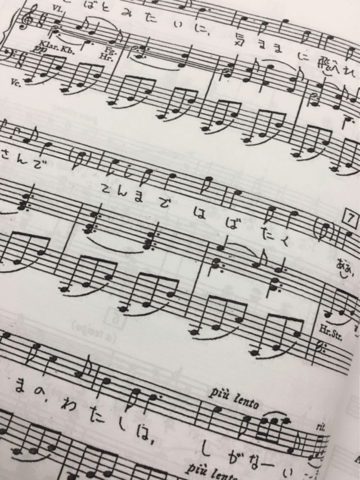 日本語上演なので、主催から楽譜を頂きました。(日本語上演のものは、公演ごとに日本語の訳詞が違うので、訳詞付きの楽譜をその都度頂くのです。)