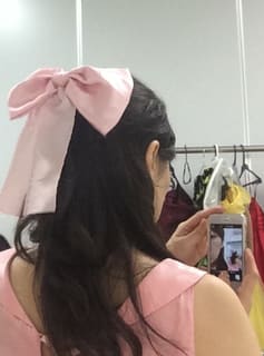 「ドレスと同じ色の大きなリボンをつけて」と、青島先生からのご指示があったので、自分で作りました。