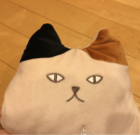 ぬいぐるみで湯たんぽを包むタイプで、ふわふわの猫のぬいぐるみが外側についています。