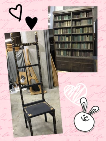 スペイン風の長い椅子、すごい立派な本棚の写真は、舞台監督さんに許可を頂いたので、載せちゃいました