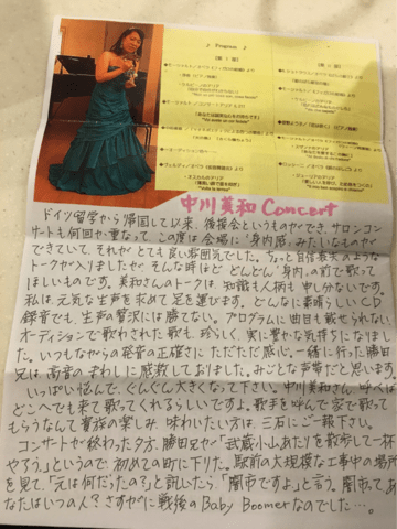 【出演者】 ソプラノ/中川美和、ピアノ/伊藤友香