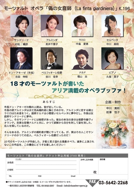 モーツァルトのオペラ「偽の女庭師」ハイライトに出演します!
