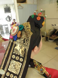 さて、みなさん気になると思います、お嫁さんの衣装。一部アップしてみました。この華やかなこと・・・