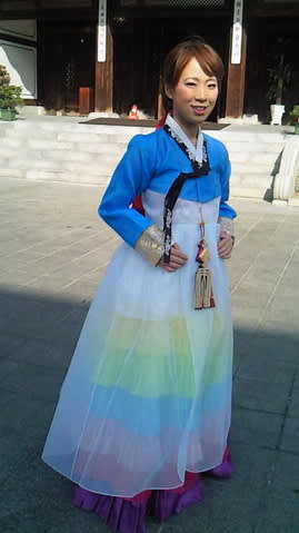 韓国のものを見て思うのが、色遣いの鮮やかさ。前の日記の私の写真の青いチョゴリ(上に着ているやつです)も、すごく色がはっきりしてますよね。