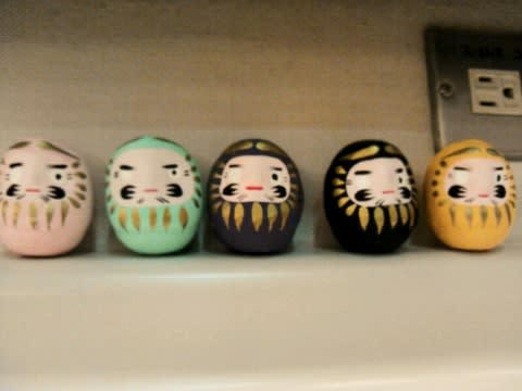 女子楽屋に並べてあるのです~。皆で片目を入れました!