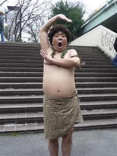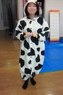・・・いえね、これ、先日、今度の本番の場所に打ち合わせに行ったらね、舞台で使えそうな小道具とかが思ったよりたくさんありましてね。着ぐるみやかぶり物もたくさんあったので、使えるかなー、と思って、とりあえず着てみた・・・