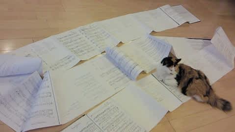 このズルズル、楽譜だけならそこまでの量ではないんですけど、当日私が読む台本も一緒に製本してあるので、なかなかな量になりました