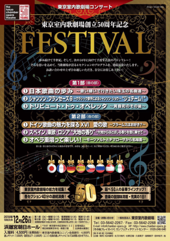 さて、今日は室内歌劇場50周年記念Festivalの本番です。私が出演させて頂くのは、夜の部の1番最後のオペラ部門。