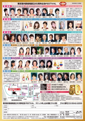 26日の室内歌劇場記念Festivalのチラシを持って、アピールしてますが